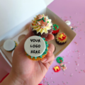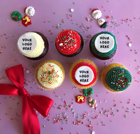 Decorations: 1/2 with a Festive Sprinkle mix & Assorted Sugar Christmas themed decorations & 1/2 with Your company logo/Chosen image