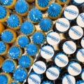 Decorations: Edible images of your company logo (If you need multiple images, Add half the cupcakes & repeat the process)