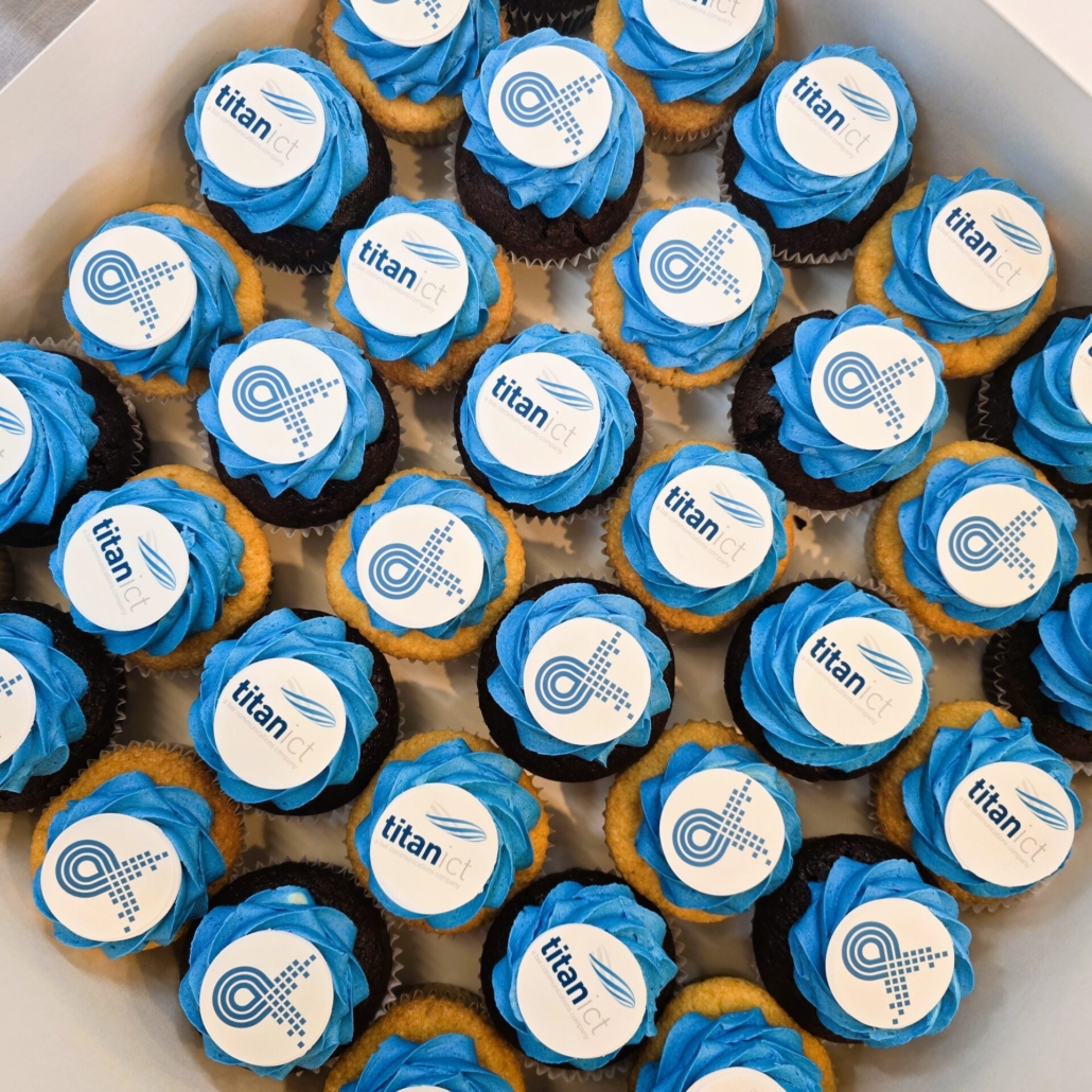 Decorations: Edible images of your company logo (If you need multiple images, Add half the cupcakes & repeat the process)