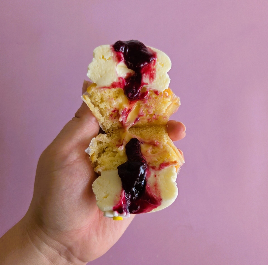 LEMON & BERRY CHEESECAKE: Vanilla cake base + Zesty Lemon Curd filling + Cream Cheese icing + Mixed Berry Compote