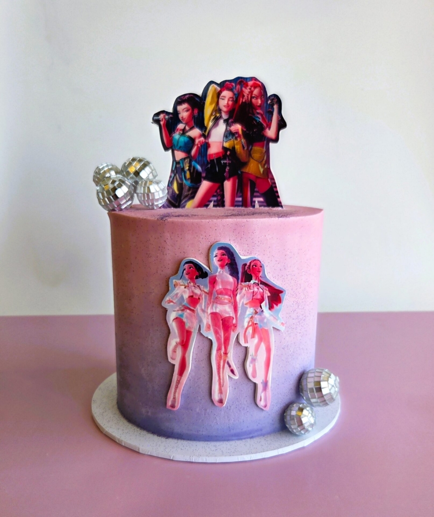 Decorations: 2x Edible images of the KPop Demon hunters group, Disco balls & Glitter dusting